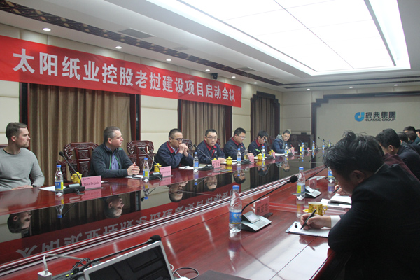 3月9日,太陽紙業(yè)老撾建設(shè)項(xiàng)目啟動(dòng)會(huì)議在經(jīng)典集團(tuán)會(huì)議中心召開。太陽紙業(yè)老撾建設(shè)項(xiàng)目總監(jiān)萬盛舉,奧地利監(jiān)造公司高級(jí)技術(shù)顧問Wojciech Szpura,經(jīng)典建設(shè)公司董事長(zhǎng)周超,經(jīng)典集團(tuán)副總經(jīng)理鄭建康,生產(chǎn)總監(jiān)王忠策及相關(guān)技術(shù)管理人員出席會(huì)議。