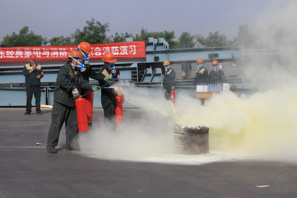 演習(xí)前,公司董事長(zhǎng)苗樹文作了動(dòng)員講話,對(duì)演習(xí)活動(dòng)進(jìn)行了部署。伴隨著消防警報(bào)響起,演習(xí)正式開始。消防應(yīng)急救援隊(duì)立即集合,全副武裝到達(dá)指定地點(diǎn),完成疏導(dǎo)交通和消防警戒,建立了應(yīng)急通訊,集團(tuán)領(lǐng)導(dǎo)下達(dá)救援命令后,一組救援人員手持干粉滅火器對(duì)準(zhǔn)火源根部由近及遠(yuǎn)進(jìn)行掃射,迅速撲滅了火苗,二組救援人員使用高壓水槍對(duì)火源進(jìn)行噴射,同樣達(dá)到了滅火的目的。演習(xí)結(jié)束后,區(qū)消防大隊(duì)趙怡然隊(duì)長(zhǎng)對(duì)演習(xí)進(jìn)行了指導(dǎo)點(diǎn)評(píng)。總經(jīng)理杜福生對(duì)消防演習(xí)進(jìn)行了總結(jié),對(duì)消防安全工作提出具體要求。