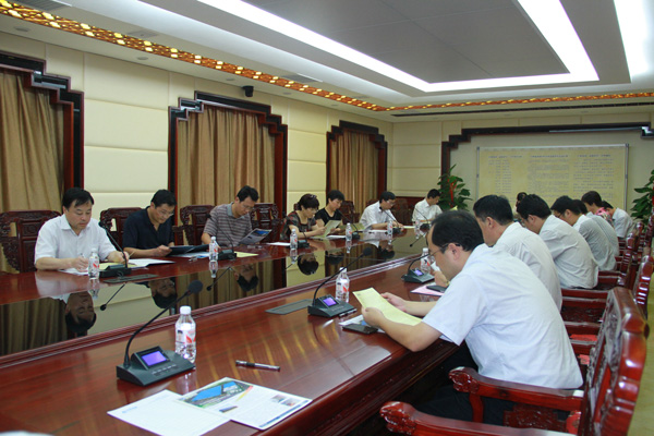 觀摩團領導在四德講堂(集團公司會議中心)聽取集團董事長苗樹文詳細匯報