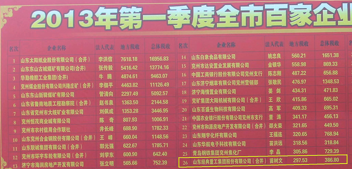 賀經典集團進入兗州2013年第一季度納稅企業前30強