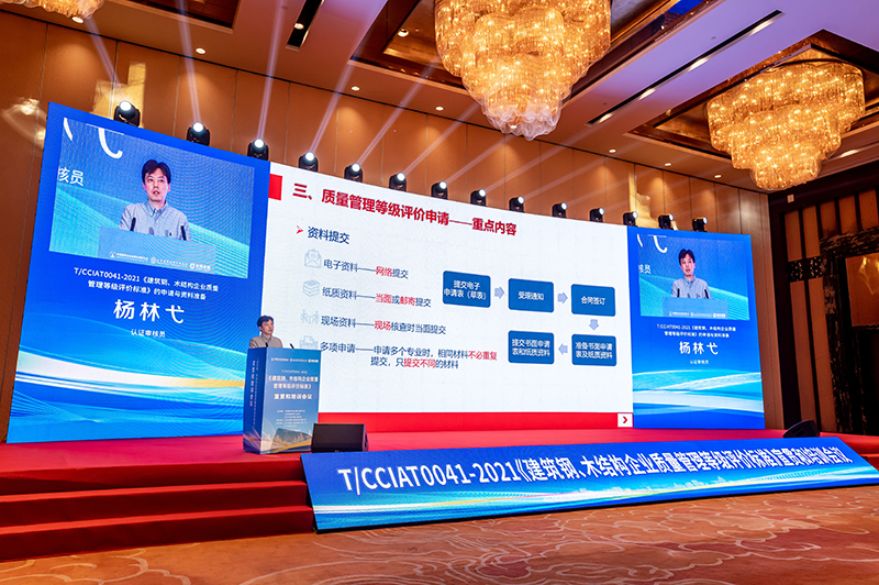 《建筑鋼、木結構企業質量管理等級評價標準》起草人、高級認證審核員楊杏弟對標準的起草背景、意義、實施等進行了介紹。