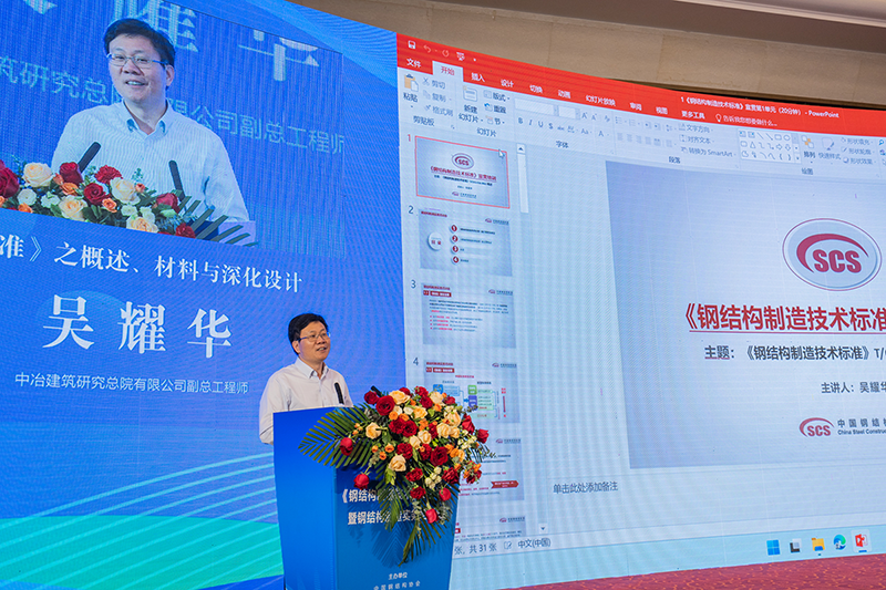 中冶建筑研究總院有限公司副總工程師吳耀華講授《鋼結構制造技術標準》概述、材料與深化設計