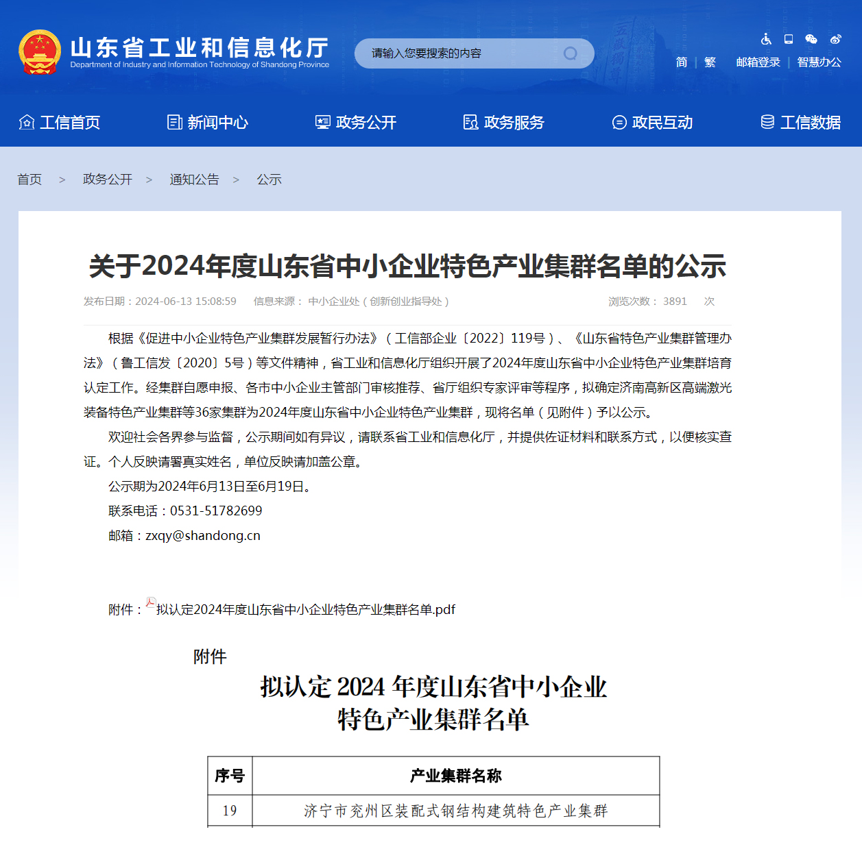 近日,山東省工業(yè)和信息化廳公布了2024年度山東省特色產(chǎn)業(yè)集群公示名單,全省共36家集群入圍。以經(jīng)典重工集團股份有限公司為主體的濟寧市兗州區(qū)裝配式鋼結構建筑特色產(chǎn)業(yè)集群成功入選。
