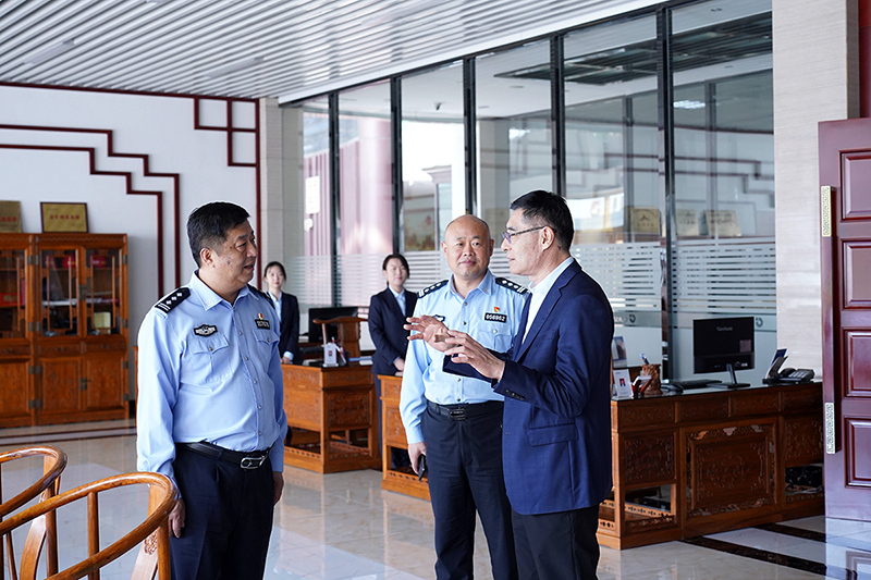 10月8日上午,濟(jì)寧市公安局兗州分局黨委副書記、政委姜治洲一行來(lái)我公司調(diào)研指導(dǎo)工作。集團(tuán)董事會(huì)主席苗樹(shù)文陪同調(diào)研。