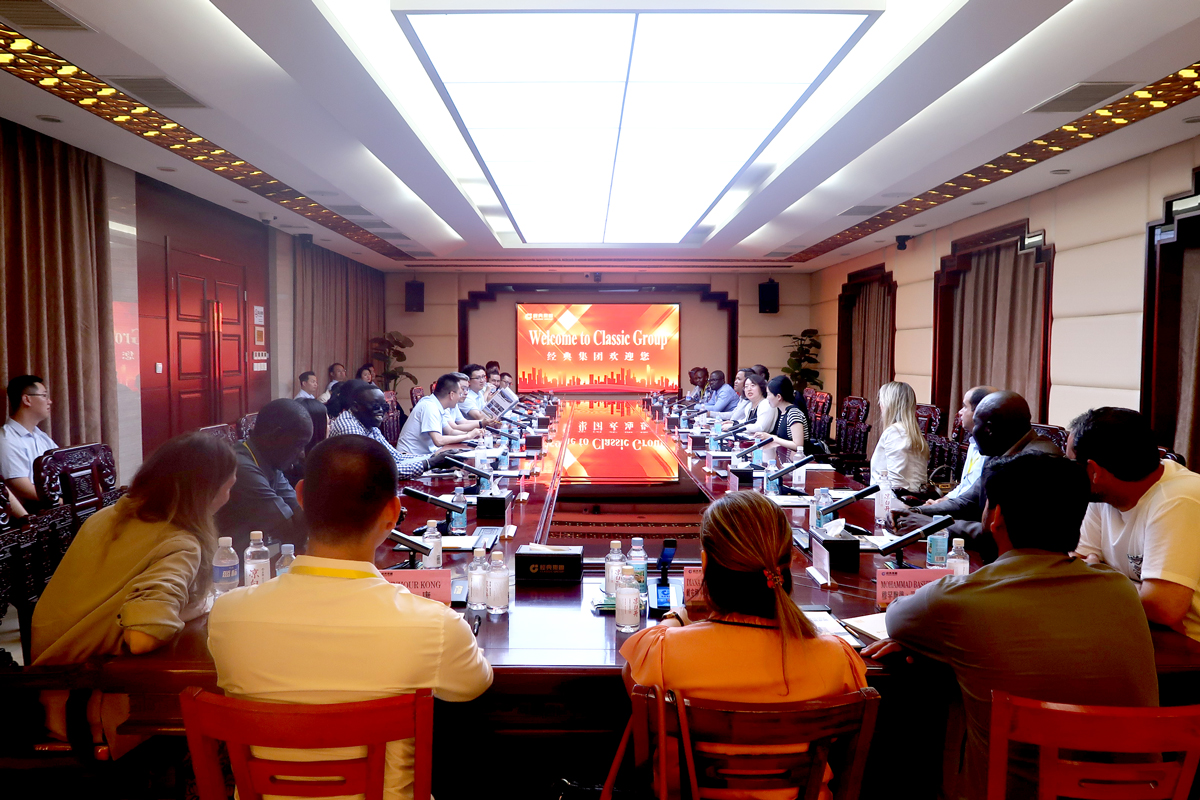 6月11日下午,由商務(wù)部主辦、山東外貿(mào)職業(yè)學(xué)院承辦的“發(fā)展中國家‘中國經(jīng)驗(yàn)-中國社會(huì)制度與公共政策’研修班”一行20余人,在山東外貿(mào)職業(yè)學(xué)院援外培訓(xùn)辦公室主任王保紅的帶隊(duì)下,蒞臨經(jīng)典集團(tuán)參觀交流。經(jīng)典集團(tuán)副總經(jīng)理兼生產(chǎn)總工張琦、副總經(jīng)理侯士輝陪同。