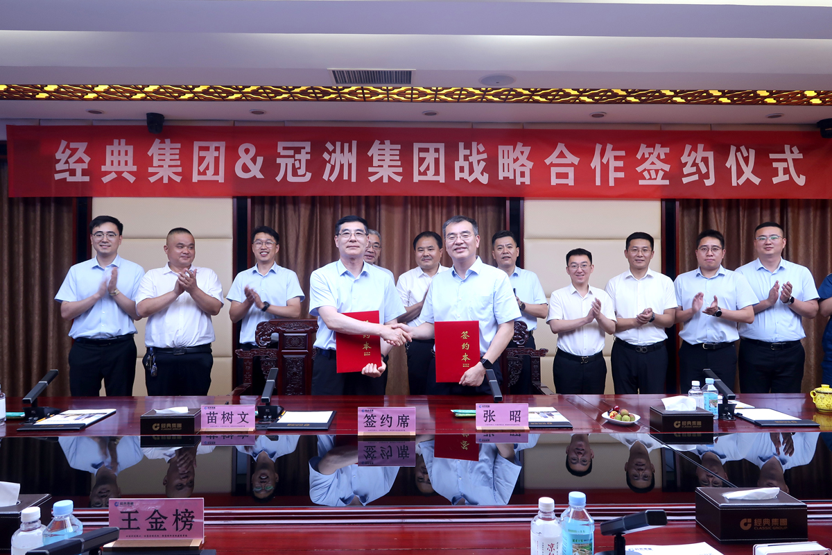 6月13日上午,經(jīng)典重工集團股份有限公司與山東冠洲股份有限公司簽訂戰(zhàn)略合作協(xié)議。經(jīng)典集團董事會主席苗樹文、冠洲董事長張昭代表雙方簽訂戰(zhàn)略合作協(xié)議并講話。經(jīng)典集團副總經(jīng)理鄭建康、王金榜、張爭,冠洲宋總出席簽約儀式。